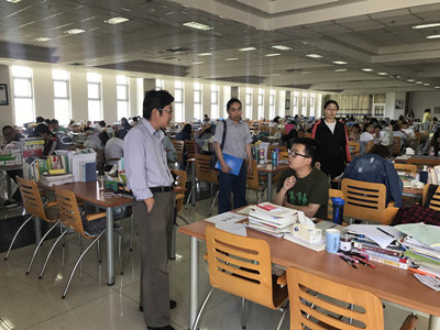 會后,系領導班子成員到圖書館六樓查看了考研學生學習情況。(環境工程系供稿)