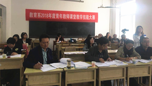 為進一步促進青年教師專業化發展,加強課堂教學管理,提高課堂教學質量,5月14日上午,教育系在沃德樓103教室舉辦了2018年青年教師課堂教學技能大賽。此次活動共8名教師參賽,學校督導組金鎖老師、教育系主任劉根歲,副教授胡寶泉,小學教育教研室主任石翠紅等擔任本次比賽的評委,教育系其他教師和部分學生參加本次學習觀摩。