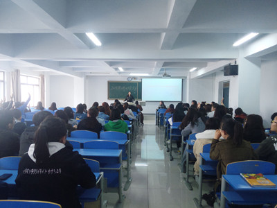 肖查娜主任作動員講話,她對外語系歷屆畢業生的考研成績進行了總結,并從考研的重要意義、專業選擇、復習備考、學校的考研獎勵制度等四個方面與大家進行了充分的交流。隨后,以優異成績成功通過初試的2014級小學教育(英語方向)專業袁靜、周婷兩位同學先后發言,向2015級學生介紹了自己的考研經歷,與大家分享其中的喜悅與艱辛。