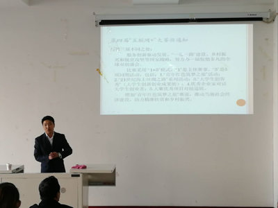 3月9日下午,環(huán)境工程系邀請我校就業(yè)指導中心創(chuàng)業(yè)培訓科負責人李海軍老師在都林樓116教室舉辦了創(chuàng)新創(chuàng)業(yè)專題講座,環(huán)境工程系主任、書記以及部分教師和學生聆聽了講座。李老師從如何做好賽前準備、如何撰寫商業(yè)計劃書、如何制作演示文稿設計等方面對創(chuàng)業(yè)的重要性和可行性作了全面而細致地闡述。