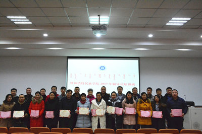 為了不斷提高我校輔導(dǎo)員綜合素質(zhì),加強(qiáng)專(zhuān)業(yè)技能知識(shí)學(xué)習(xí),全面落實(shí)教育部《普通高等學(xué)校輔導(dǎo)員隊(duì)伍建設(shè)規(guī)定》、自治區(qū)黨委宣傳部、高校工委《關(guān)于進(jìn)一步加強(qiáng)內(nèi)蒙古自治區(qū)普通高校輔導(dǎo)員隊(duì)伍建設(shè)的實(shí)施意見(jiàn)》、《呼和浩特民族學(xué)院輔導(dǎo)員隊(duì)伍建設(shè)的實(shí)施細(xì)則》、《中共呼和浩特民族學(xué)院委員會(huì)關(guān)于加強(qiáng)和改進(jìn)新形勢(shì)下思想政治工作的意見(jiàn)》文件精神,學(xué)生處于12月16日在美術(shù)系四樓階梯教室,舉辦了2017年輔導(dǎo)員專(zhuān)題培訓(xùn)班。