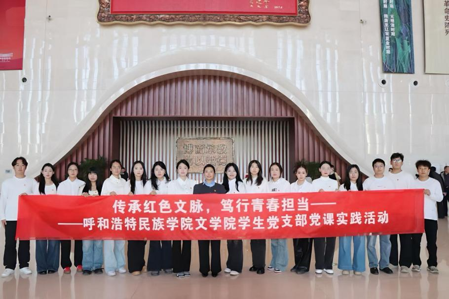 為全面貫徹黨的二十屆四中全會(huì)精神,堅(jiān)持以鑄牢中華民族共同體意識(shí)工作主線,11月14日,文學(xué)院學(xué)生黨支部以“傳承紅色文脈 篤行青春擔(dān)當(dāng)”為主題開展第34期黨課實(shí)踐活動(dòng)。在學(xué)生黨支部書記劉曉老師帶領(lǐng)下,30余名學(xué)生黨員、入黨積極分子走進(jìn)內(nèi)蒙古博物院,沉浸式接受紅色教育與文化的熏陶。