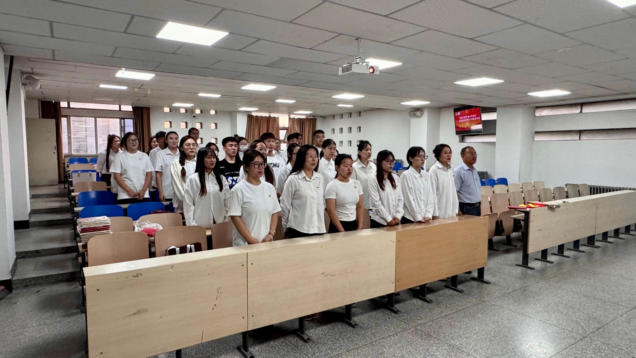 引導新發展學生黨員堅定理想信念,強化黨員身份意識與責任擔當,9 月 16 日,在尚智樓314教室舉行學生黨員入黨宣誓活動。學生第一黨支部書記樊寒偉老師、在校黨員及全體新發展學生黨員參加了此次活動。