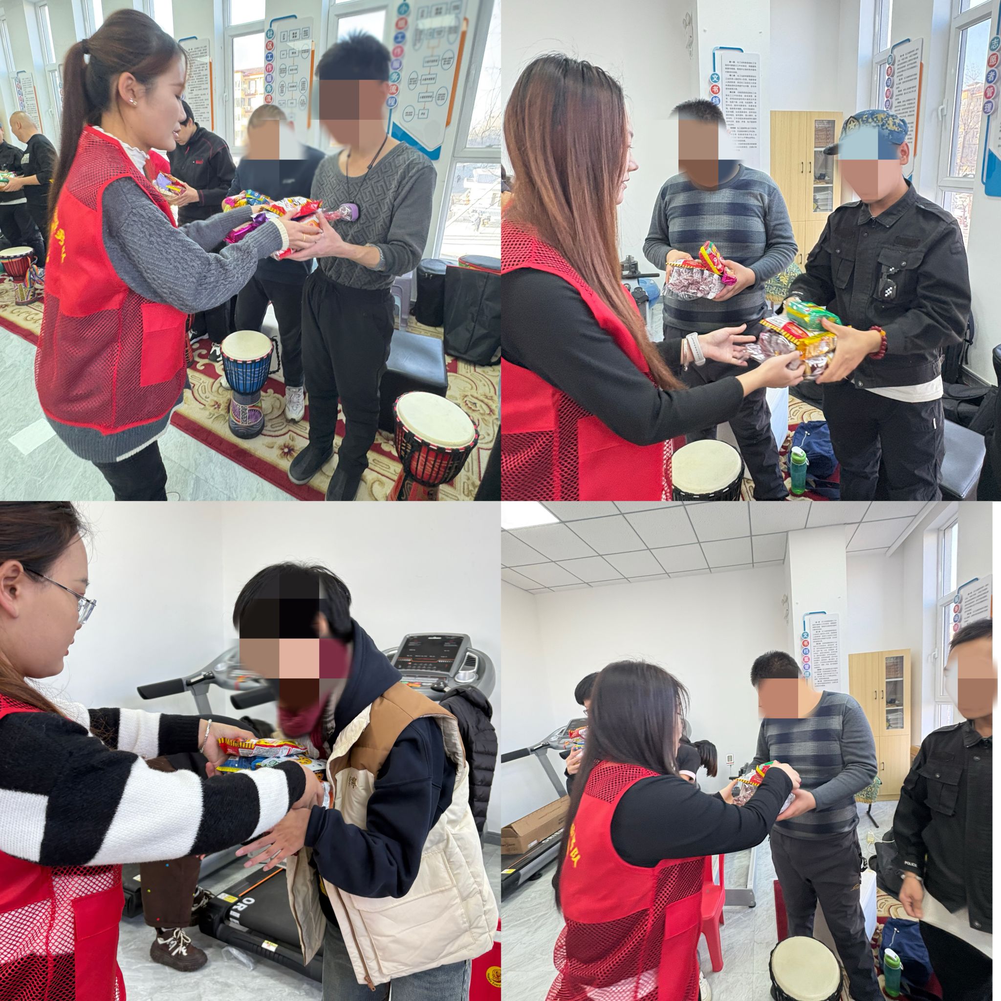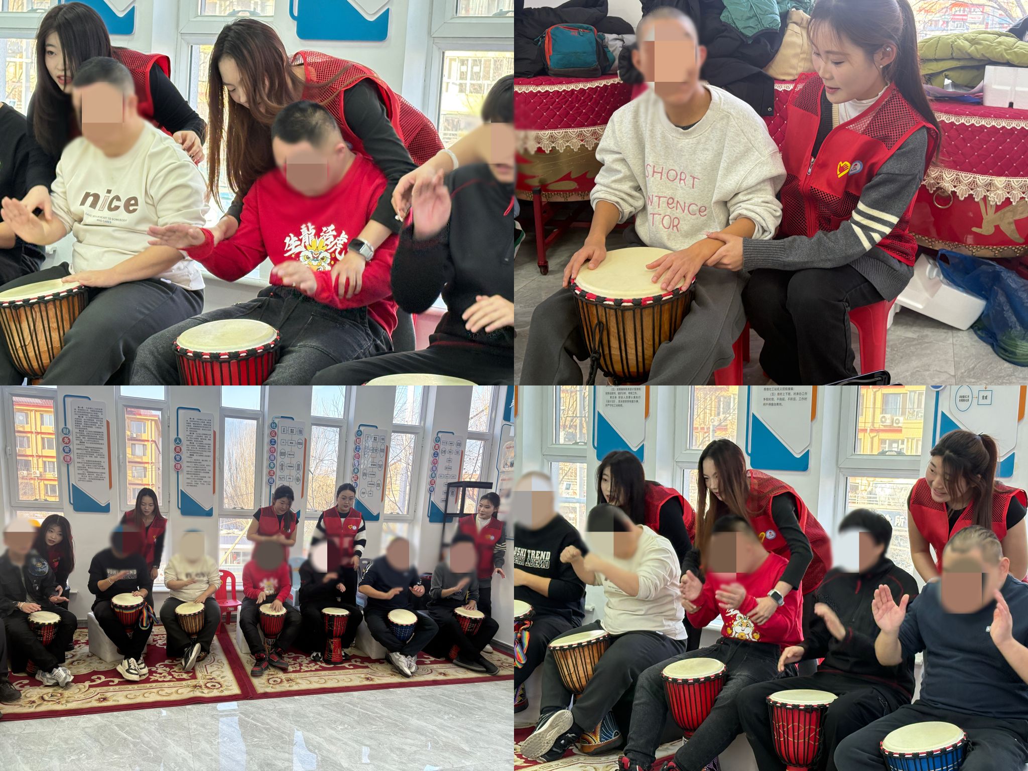 志愿者們耐心示范擊鼓的節(jié)奏與手法,親自指導(dǎo)參與者們感受鼓點(diǎn)的韻律,從操作生疏到漸趨合拍,現(xiàn)場(chǎng)的歡笑聲與鼓點(diǎn)聲相互交織,匯聚成了溫暖的樂(lè)章。特殊人群在擊鼓過(guò)程中釋放了活力,臉上洋溢著燦爛的笑容。部分參與者稍顯拘謹(jǐn),鼓點(diǎn)節(jié)奏時(shí)快時(shí)慢,甚至有些跟不上節(jié)拍。志愿者們見(jiàn)此情形,即刻采用“一對(duì)一”的幫扶方式,俯身立于參與者身旁,親自糾正其姿勢(shì),引領(lǐng)他們體會(huì)手腕發(fā)力的程度,耐心引導(dǎo)他們跟上集體的節(jié)奏。擊鼓互動(dòng)結(jié)束后,志愿者們?yōu)樵趫?chǎng)的每一位特殊人群送上了精心籌備的愛(ài)心零食禮包。接過(guò)禮包的瞬間,眾人臉上均綻放出純真的笑容,有的參與者還主動(dòng)拉住志愿者的手,用不太清晰的話語(yǔ)表達(dá)“謝謝”。這簡(jiǎn)單的兩個(gè)字,令在場(chǎng)的志愿者們內(nèi)心一暖,深切體會(huì)到了此次志愿服務(wù)活動(dòng)的意義與價(jià)值。