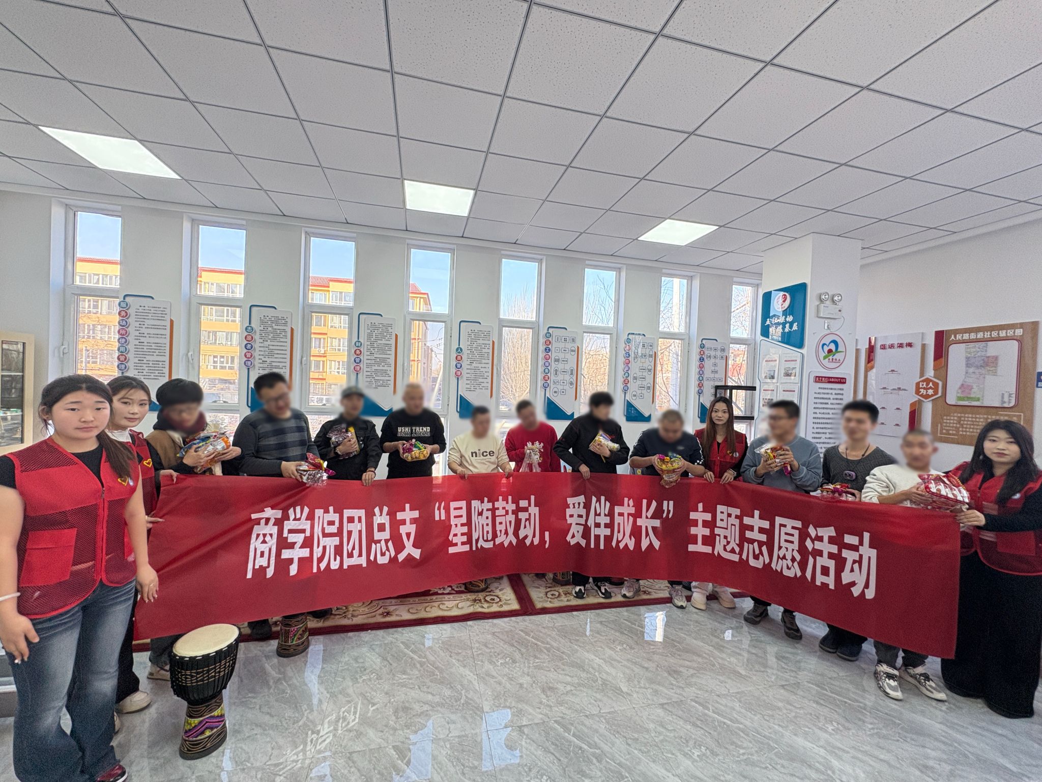 在第 40 個(gè)國(guó)際志愿者日來(lái)臨之際,為大力弘揚(yáng)“奉獻(xiàn)、友愛(ài)、互助、進(jìn)步”的志愿服務(wù)精神,切實(shí)履行青年組織的社會(huì)責(zé)任,傳遞對(duì)特殊群體的關(guān)懷與溫暖,12 月 7 日,商學(xué)院團(tuán)總支組織學(xué)院發(fā)展團(tuán)員、入黨積極分子、發(fā)展對(duì)象等 17 名青年志愿者前往仕奇社區(qū)黨群活動(dòng)中心開(kāi)展“星隨鼓動(dòng),愛(ài)伴成長(zhǎng)”主題志愿活動(dòng),以鼓點(diǎn)奏響歡樂(lè)樂(lè)章,以愛(ài)心點(diǎn)亮溫暖時(shí)光。