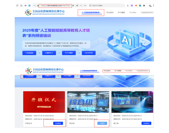 參加線上理論培訓的人員于2025年8月8日前登錄直播平臺(https://szh.enetedu.com)“人工智能賦能高等教育人才培養系列師資培訓”專區,輸入手機號與驗證碼報名,查看具體培訓日程安排及注意事項,并按時參加培訓。