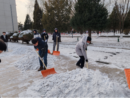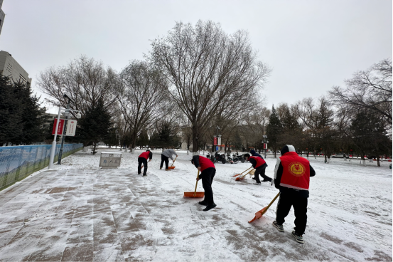 近日,呼市普降大雪,給美麗的校園增添別樣景致的同時路面積雪也為師生出行帶來了不便和安全隱患,為保障校園道路暢通、師生出行安全,營造安全有序的校園環境,學生工作部于12月14日組織開展了“清掃積雪暖人心,志愿服務在行動”主題勞動教育實踐活動。
