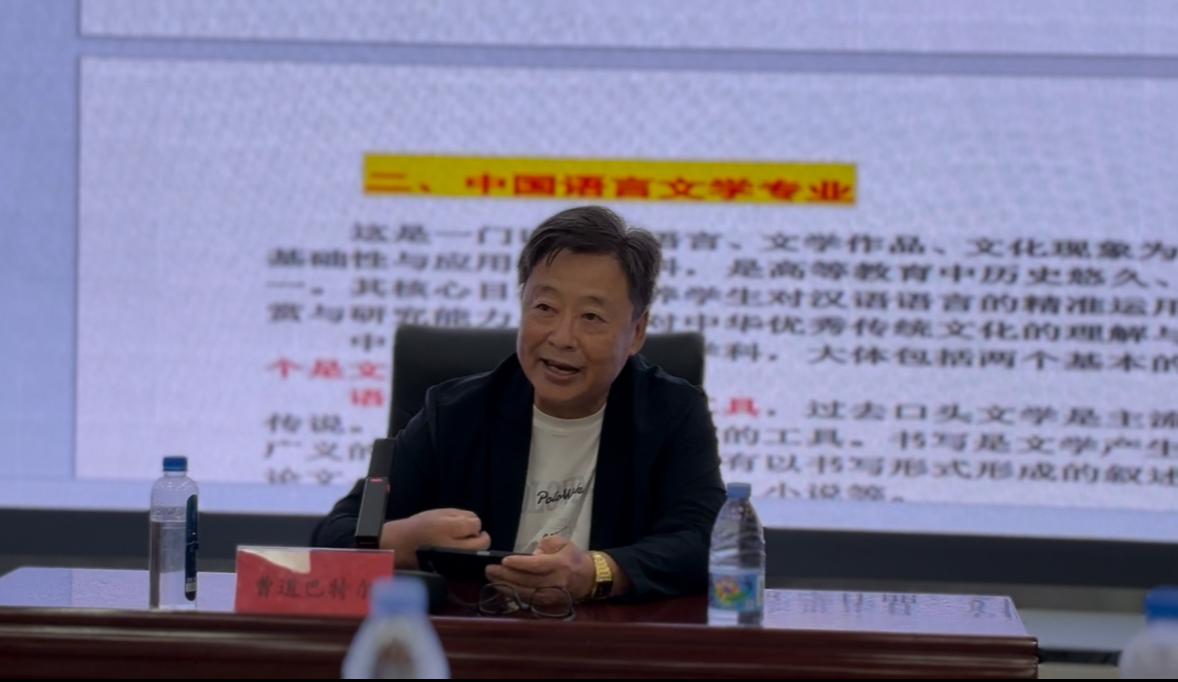 2025年9月4日下午,中國社會科學(xué)院民族學(xué)與人類學(xué)研究所研究員、博士生導(dǎo)師曹道巴特爾教授應(yīng)邀來到我校文學(xué)院,以《中國語言文學(xué)與北疆文化建設(shè)》為題目進(jìn)行專題講座。本次講座由文學(xué)院院長高娃教授主持,全院師生共同參與。