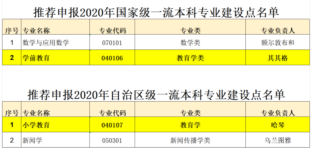 2019年教育學一級學科獲批國家民委重點建設學科;2020年小學教育專業獲批自治區級一流本科專業;2022年學前教育專業獲批國家級一流本科專業建設點;2024年獲批教育碩士點建設單位;2025年獲批1門國家級一流課程和2門自治區一流課程;
