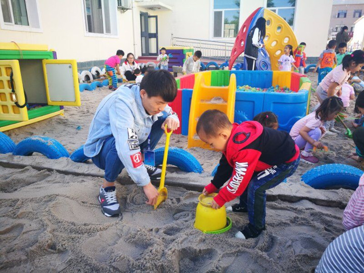 與幼兒一起玩沙現(xiàn)場(chǎng)
