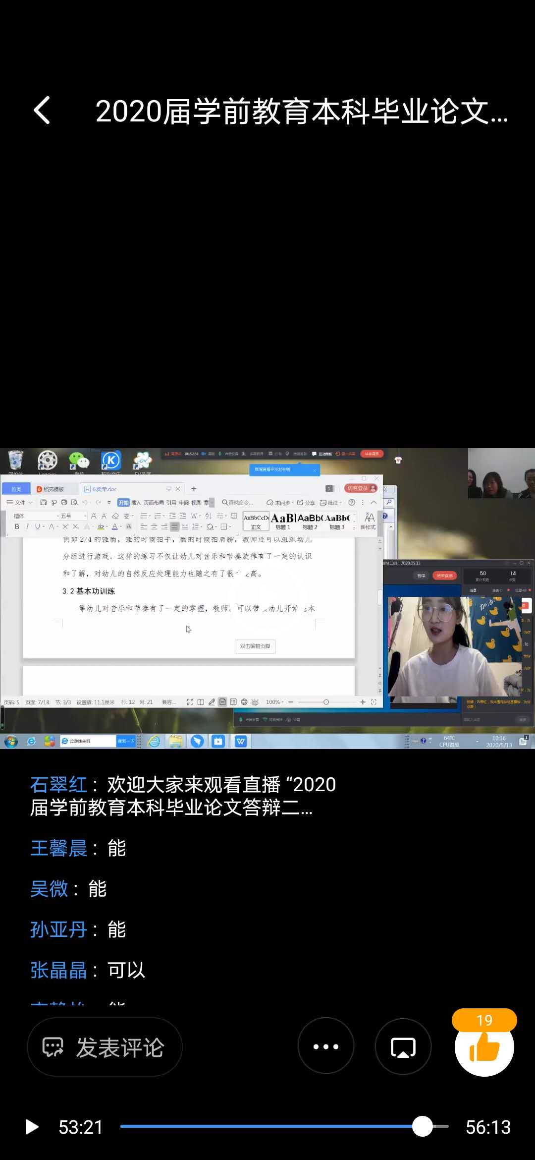 根據我校新冠肺炎疫情防控和教學工作畢業論文答辯相關部署要求,按照學前教育學院疫情防控期間畢業生論文答辯工作方案,于2020年5月13日上午9:00至下午15:30在沃德樓會議室和辦公室,分四組進行了畢業生論文在線答辯工作。為了確保論文答辯工作順利進行,學前教育學院成立了疫情期間畢業論文工作領導小組、答辯小組和工作小組,利用釘釘平臺以在線視頻的方式,統一組織實施畢業生論文答辯工作。答辯中,2020屆學前教育專業的155名畢業生分別針對自己的論文選題、結構框架、內容概況、研究方法和實際意義向各位評審教師進行陳述,并對評審教師提出的問題一一作答。答辯評審老師認真審閱了每一篇畢業論文,嚴格按照論文要求,把握質量關、答辯關,對答辯論文的研究內容、研究方法和學術思想等方面進行了精彩點評,并對同學們的不足之處提出了寶貴意見和修改建議。