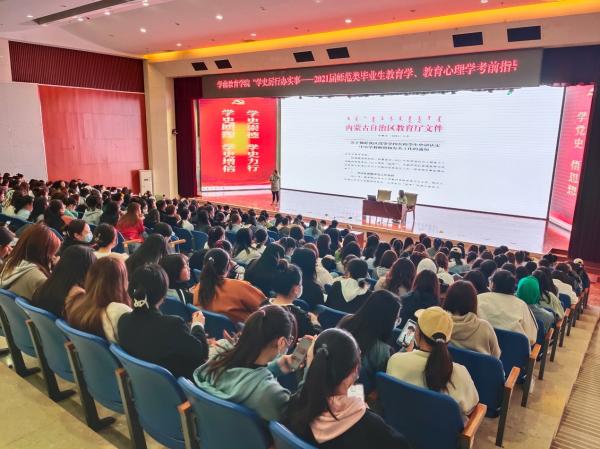 為深入貫徹學習習近平總書記在黨史學習教育動員大會上的重要講話精神,為進一步為廣大師生排憂解難,辦實事、辦好事,促進解決師生最關心、最迫切的問題,學前教育學院黨支部于4月29日下午,在圖書館二樓報告廳,舉辦主題為“學史力行辦實事—2021屆師范類畢業生教育學、教育心理學考前指導講座”。講座由學前教育學院梅花老師和許曉芳老師主講。全校2021屆師范類專業畢業生近600人參加,座無虛席。