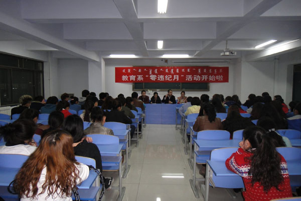 在本次活動(dòng)的儀式上,我系團(tuán)總支書記胡寶泉老師向在場的師生,詳細(xì)說明了本次活動(dòng)的目的、教育內(nèi)容及活動(dòng)要求并宣讀了教育系“零違紀(jì)月”活動(dòng)的方案。之后,許曉芳老師、王慧東老師組織各自班級(jí)的學(xué)生深入學(xué)習(xí)了學(xué)院有關(guān)規(guī)章制度。