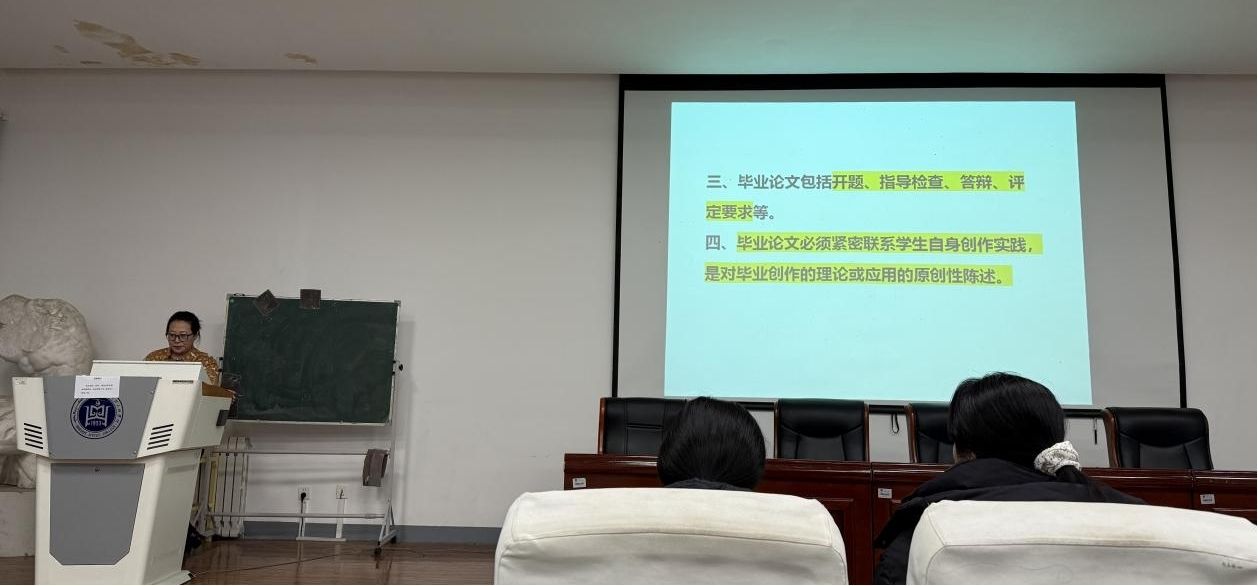 為進一步規范畢業生畢業論文撰寫工作,切實提升論文質量,11月18日晚,美術與設計學院在美術樓階梯教室召開了2026屆學生畢業論文撰寫指導會。2022級美術學、藝術設計專業全體學生參加培訓。