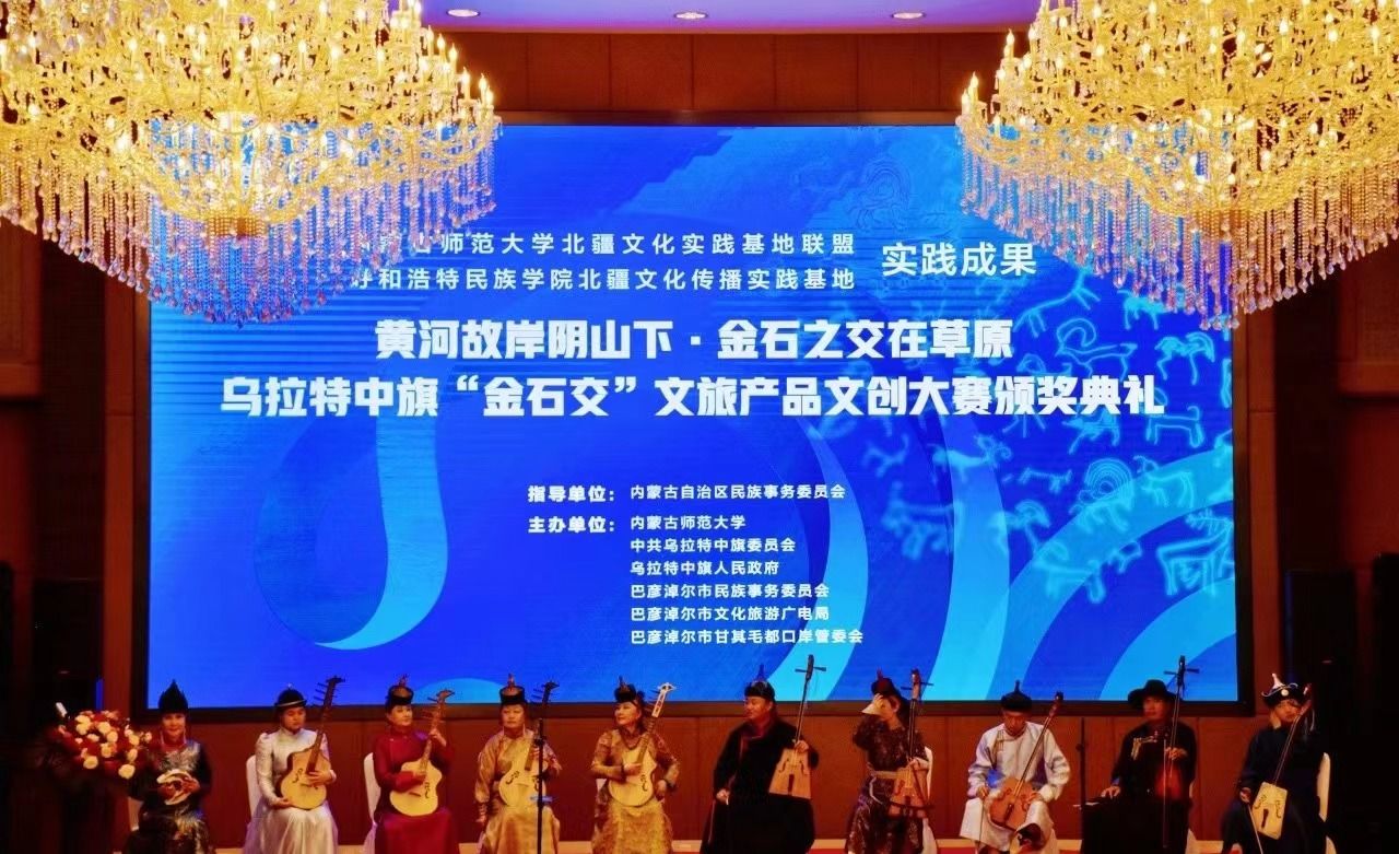 7月27日,由內蒙古自治區民族事務委員會指導,內蒙古師范大學、中共烏拉特中旗委員會、烏拉特中旗人民政府等多個單位聯合主辦的黃河故岸陰山下·金石之交在草原烏拉特中旗“金石交”文旅產品文創大賽頒獎典禮在呼和浩特舉辦。學校黨委委員副校長額爾敦布和應邀參加并致辭。