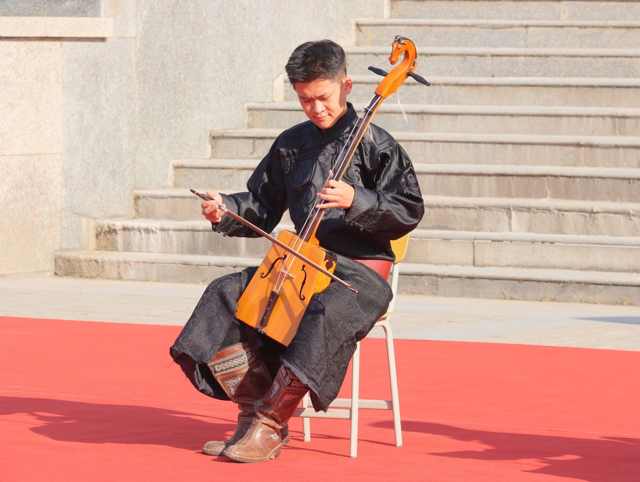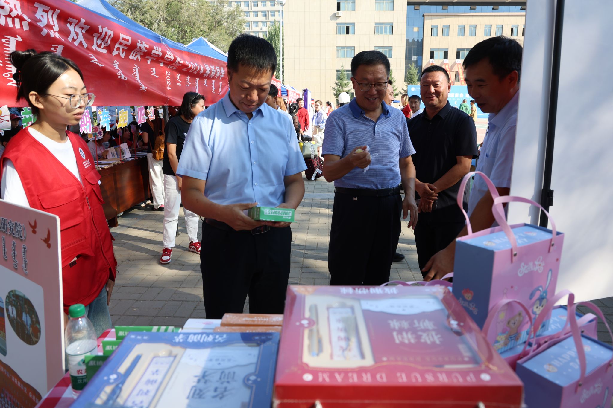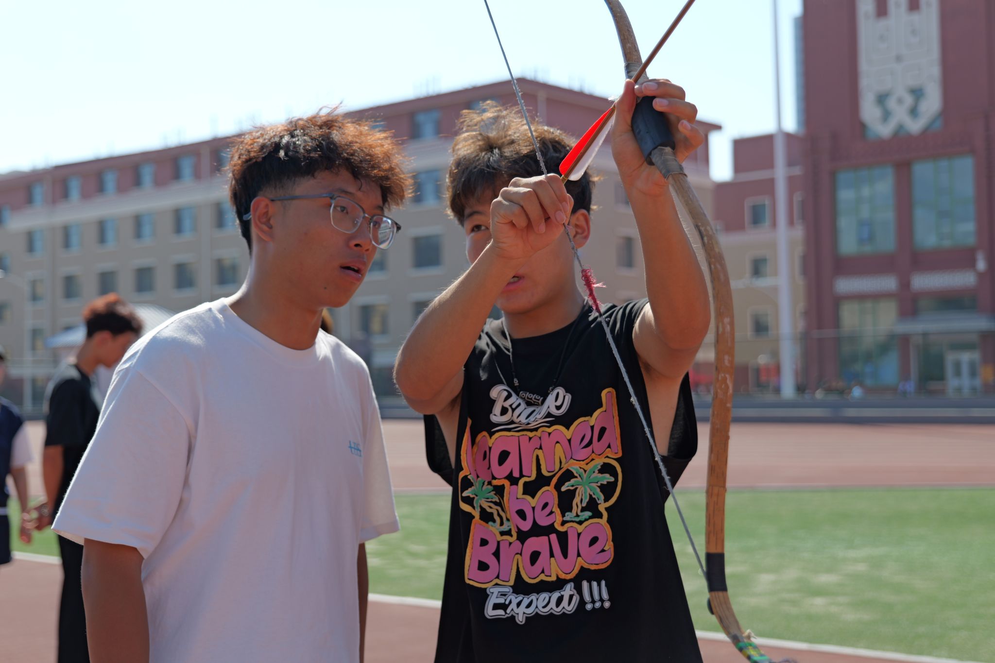 迎新現場,馬頭琴齊奏、歌舞表演輪番上陣,非遺藝術品琳瑯滿目,布魯、射箭等非遺體育體驗項目豐富多彩,為新生和家長營造了濃厚的校園文化氛圍。