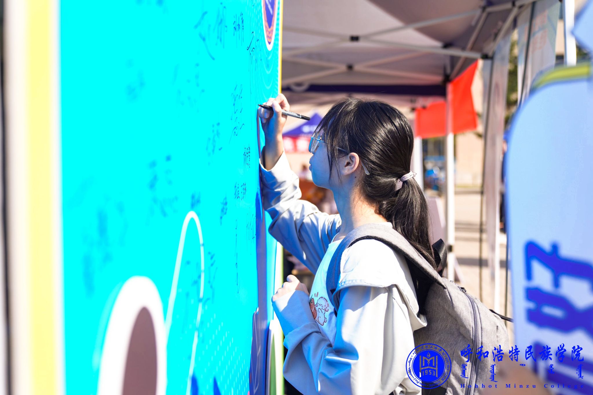大家有序辦理入學手續,在打卡點合影留念、在2024留言板上留下自己的“呼民院初印象”……