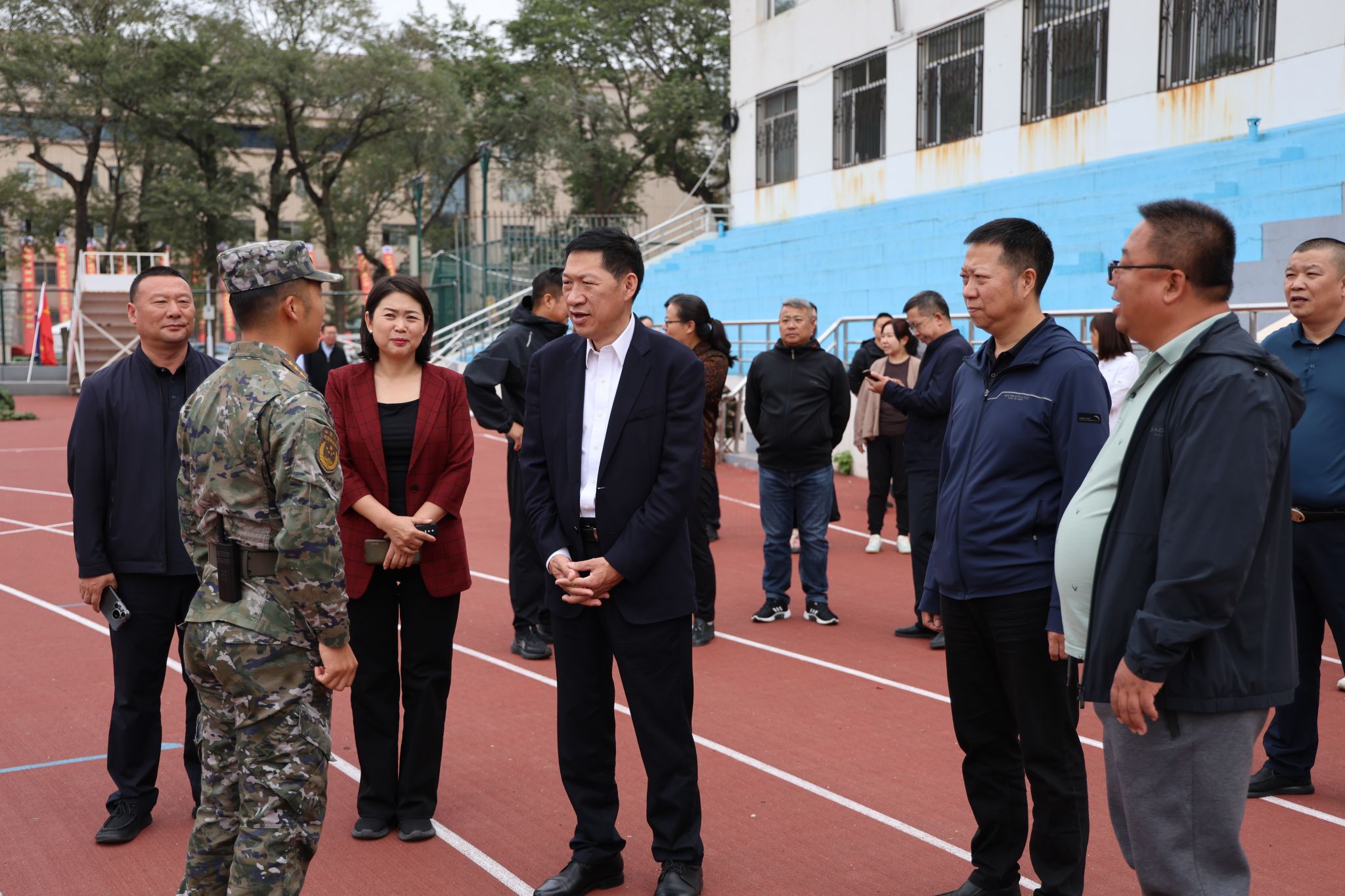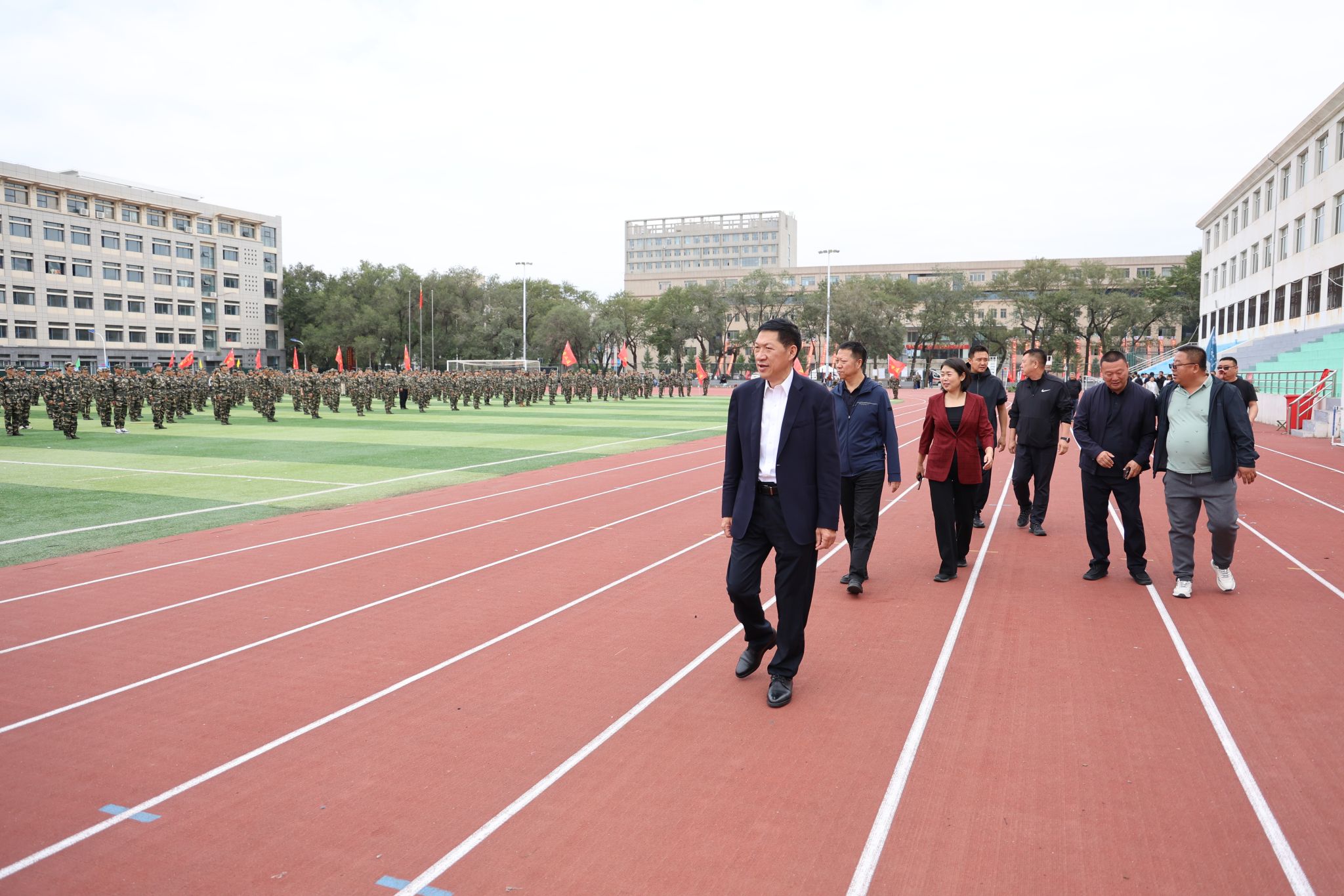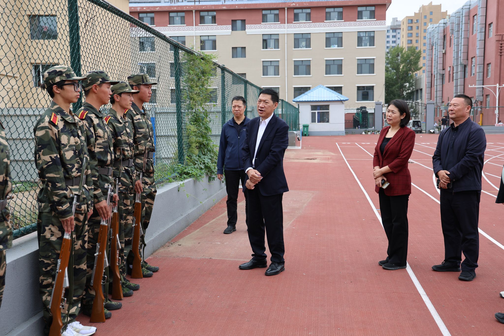 9 月 12 日,校黨委書記劉九萬,黨委副書記格根哈斯,黨委委員、副校長雙虎到軍訓現場,檢查指導2024級新生軍訓工作,看望慰問軍訓學生,向付出辛勤勞動的教官、教師和輔導員們表示慰問。