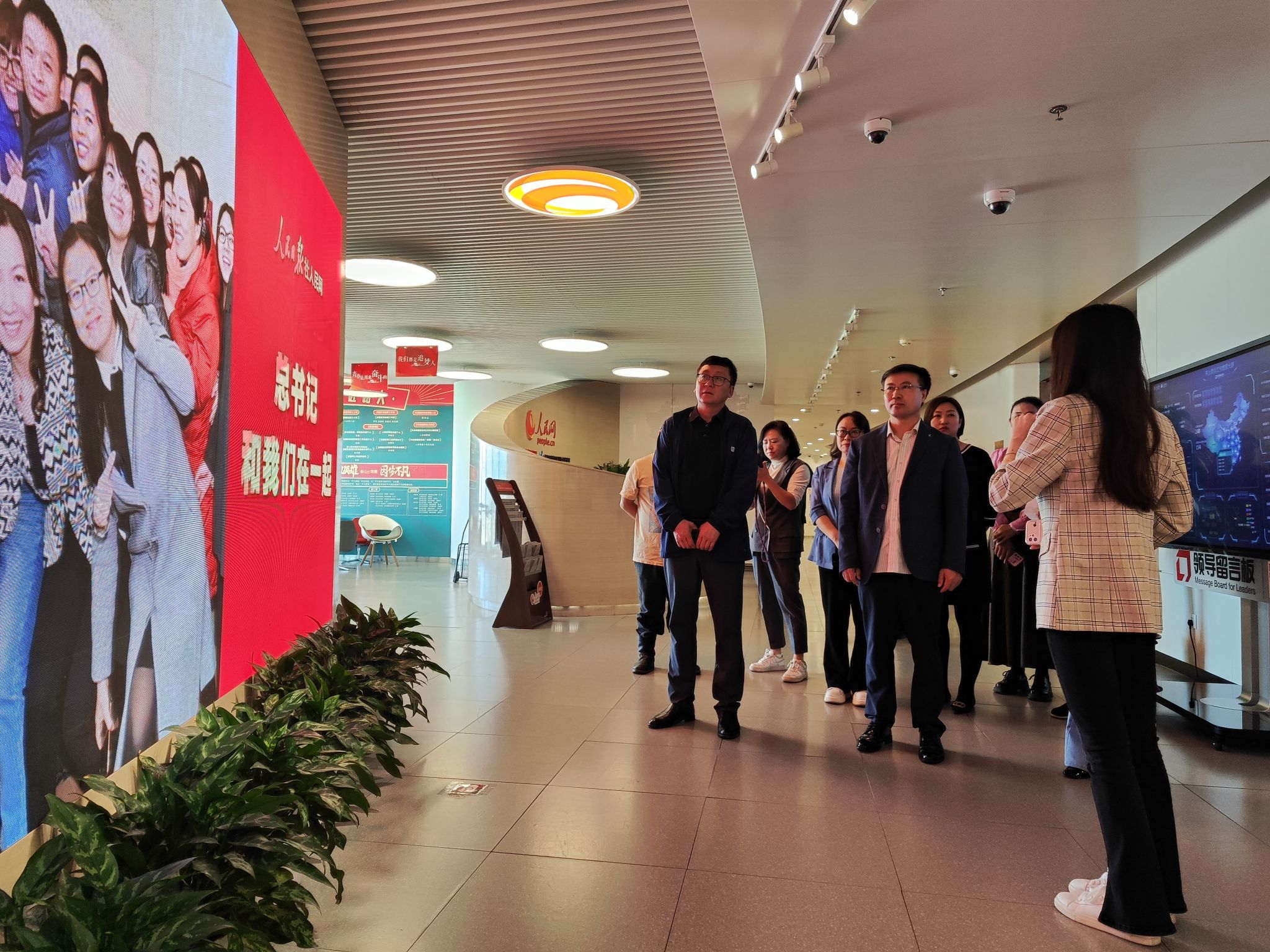 沿著習近平總書記參觀人民日報數字傳播公司、“中央廚房”、新媒體中心時的足跡,依次參觀了人民日報社的電子閱報欄、人民網一號演播大廳、人民網直播間等部門,親身體驗人民日報、人民網媒體融合發展的最新進展。