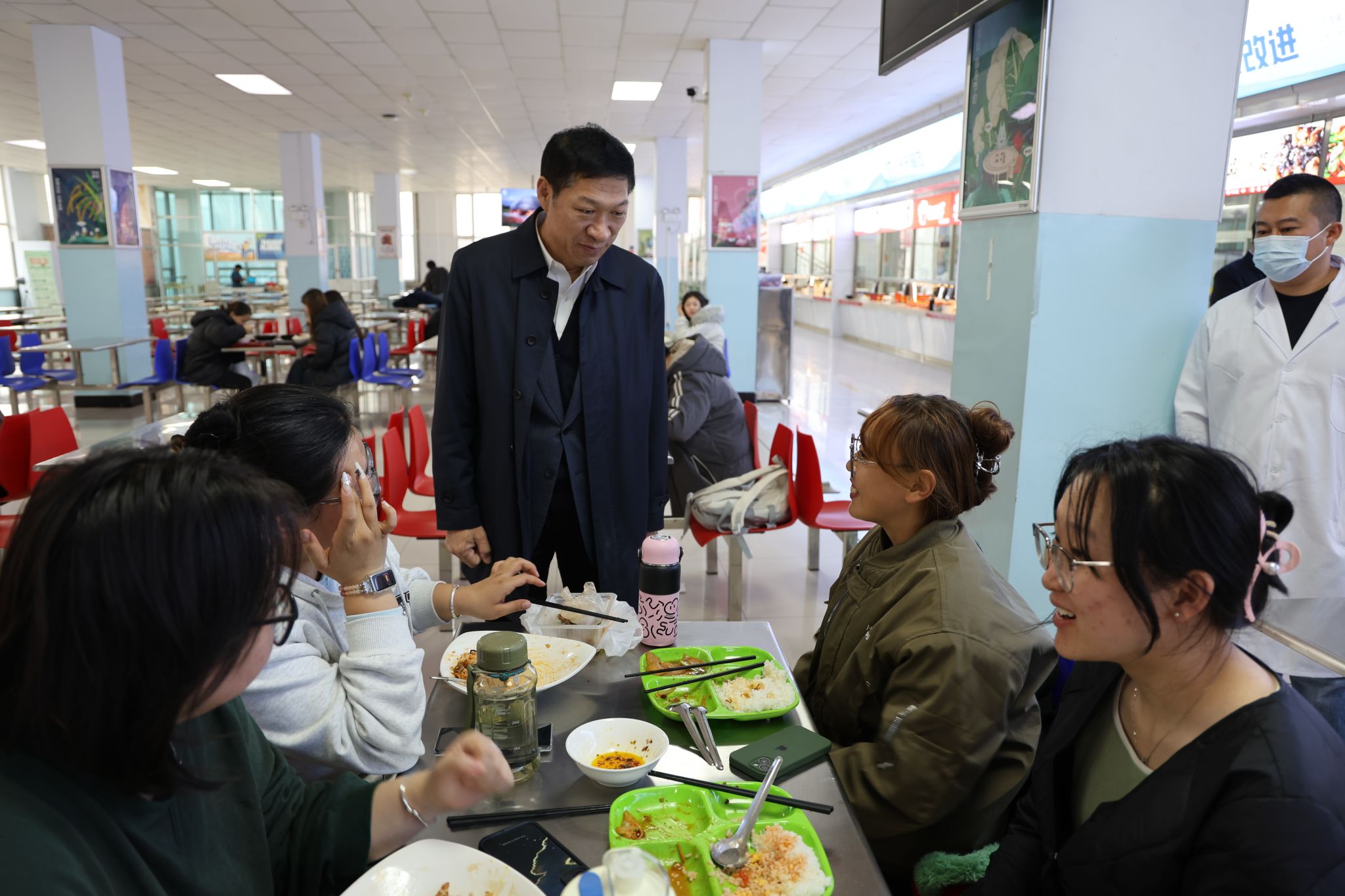 在北區食堂,劉九萬與正在就餐的同學們親切交談,詢問大家的生活和學習情況,了解同學們的心聲,聽取學生的意見和建議。同學們暢所欲言,表示食堂的品種更多了、環境更好了、價格更實在了。劉九萬強調,校園食品安全事關師生身心健康和社會和諧穩定,要強化食品加工全過程、全流程、全鏈條監管,堅決守牢食品安全底線,要主動傾聽學生訴求,合理調整膳食品種,不斷提高飯菜質量和服務水平,確保廣大師生吃得安全、健康、營養。