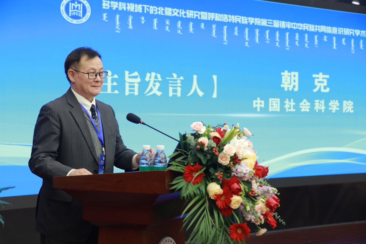 劉九萬對與會專家學者及嘉賓們的到來表示熱烈歡迎,并簡要介紹了學校歷史沿革、發展歷程及近年來在貫徹鑄牢中華民族共同體意識工作主線所取得的成績。他表示,學校舉辦“多學科視域下的北疆文化研究暨呼和浩特民族學院第三屆鑄牢中華民族共同體意識研究學術研討會”,既是服務國家重大戰略和自治區兩件大事的具體舉措,也是賡續學校民族團結進步教育底色的重要實踐。研討會將一如既往地堅持以習近平新時代中國特色社會主義思想為指導,將把學習貫徹黨的二十屆三中全會精神與習近平總書記關于加強和改進民族工作的重要思想結合起來,立足北疆文化鮮明特質,持續深化相關基礎理論和重大現實問題研究。他指出,學校黨委堅決貫徹落實“鑄牢”兩個主線要求,始終牢記習近平總書記殷殷囑托,將把鑄牢中華民族共同體意識作為學校人才培養的生命線,將其貫穿到立德樹人、辦學治校各方面,積極探索鑄牢中華民族共同體意識實踐路徑。他希望,與會專家學者將以此次學術研討會為交流平臺,深入開展鑄牢中華民族共同體意識理論研究和闡釋,為推進“北疆文化”建設增添助力,為打造“北疆文化”品牌提供深厚學術支撐,真正讓植根在北疆大地的優秀文化在新時代活起來、火起來。