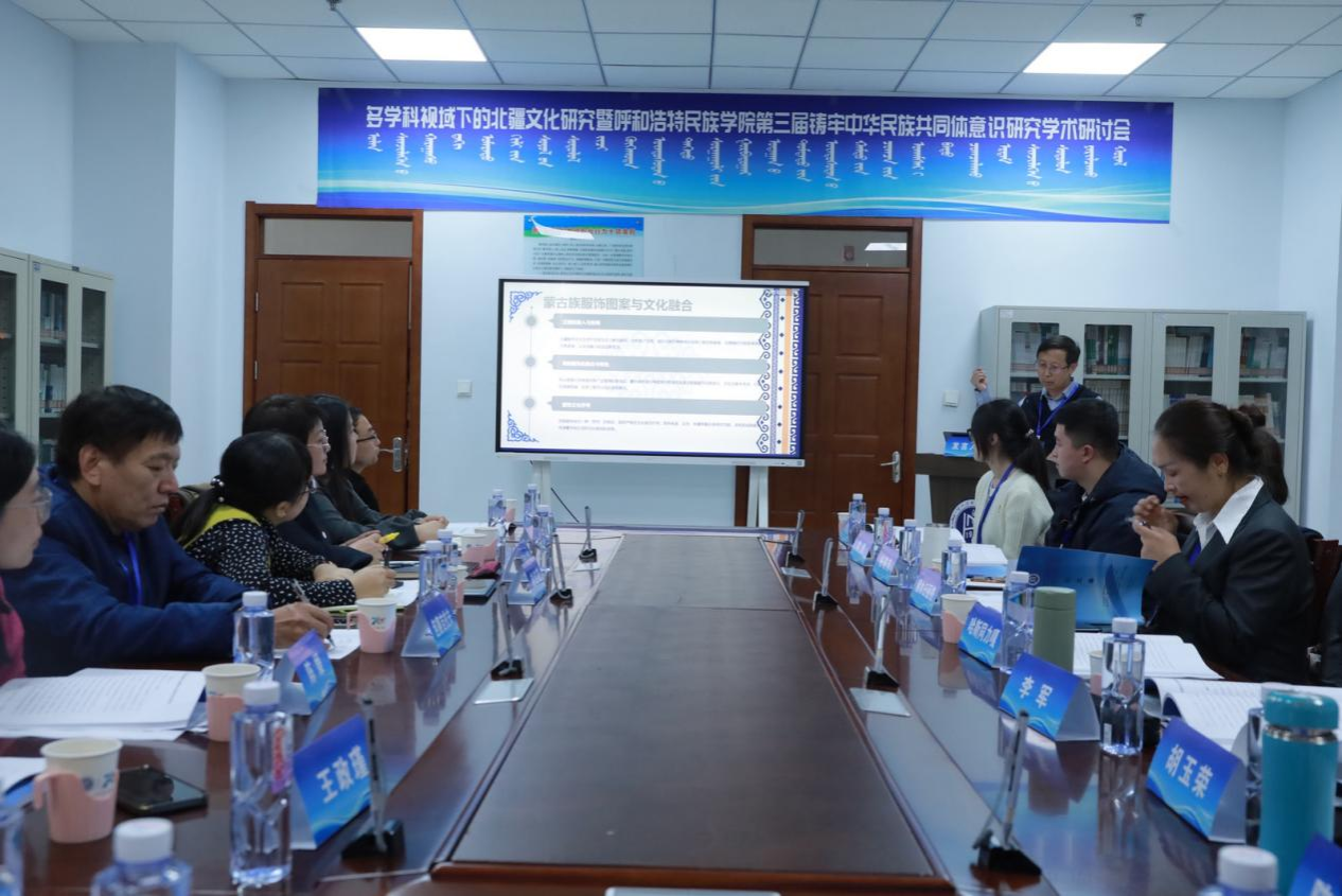 11月23日,學校鑄牢中華民族共同體意識研究基地、蒙古族非物質文化遺產研究基地、北疆文化傳播實踐中心、新時代內蒙古三少民族語言文化研究基地聯合舉辦了 “多學科視域下的北疆文化研究暨第三屆鑄牢中華民族共同體意識研究學術研討會"。來自中國社會科學院、中國人民大學、蘭州大學、新疆師范大學以及區內外各高校、科研機構的100余名專家學者出席本次學術研討會。國家民委教育司一級巡視員周曉梅,自治區民委黨組成員、副主任云冰,內蒙古自治區人大科教文委副主任委員、內蒙古日報社原總編輯、社長吳海龍,中國社會科學院蒙古學研究中心主任包勝利,內蒙古廣播電視臺新聞中心攝像部原主任、高級編輯包金花,內蒙古自治區民委理論研究處處長張玲玲等嘉賓應邀出席研討會。校黨委書記、鑄牢中華民族共同體意識研究基地主任劉九萬出席會議并致開幕辭。校黨委副書記格根哈斯主持研討會開幕式。校黨委委員、副校長額爾敦布和主持研討會主旨報告環節。
