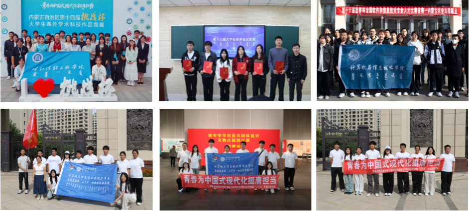 打造“學(xué)科競賽+社團(tuán)活動(dòng)+社會(huì)實(shí)踐”三位一體育人體系,全面提升學(xué)生綜合素養(yǎng)與專業(yè)競爭力。依托“程序開發(fā)社團(tuán)”“智維·計(jì)算機(jī)技術(shù)社團(tuán)”,形成200余人核心群體,年均開展編程培訓(xùn)、創(chuàng)新創(chuàng)業(yè)實(shí)訓(xùn)等活動(dòng)20余場,2022年以來承辦華為ICT大賽、“藍(lán)橋杯”等高水平賽事10次,學(xué)生累計(jì)斬獲國家級(jí)、省部級(jí)獎(jiǎng)項(xiàng)112項(xiàng)。以“實(shí)踐育人”為導(dǎo)向,組織多樣化社會(huì)實(shí)踐活動(dòng),2025年暑期“三下鄉(xiāng)”團(tuán)隊(duì)赴赤峰開展社區(qū)服務(wù)與紅山文化研學(xué),實(shí)現(xiàn)服務(wù)社會(huì)與文化認(rèn)知雙向賦能;推動(dòng)“返家鄉(xiāng)”實(shí)踐,學(xué)生在政府、法院、科技館等崗位歷練,將專業(yè)知識(shí)融入基層服務(wù),錘煉實(shí)操能力與社會(huì)責(zé)任感,達(dá)成價(jià)值塑造與能力提升的有機(jī)統(tǒng)一。