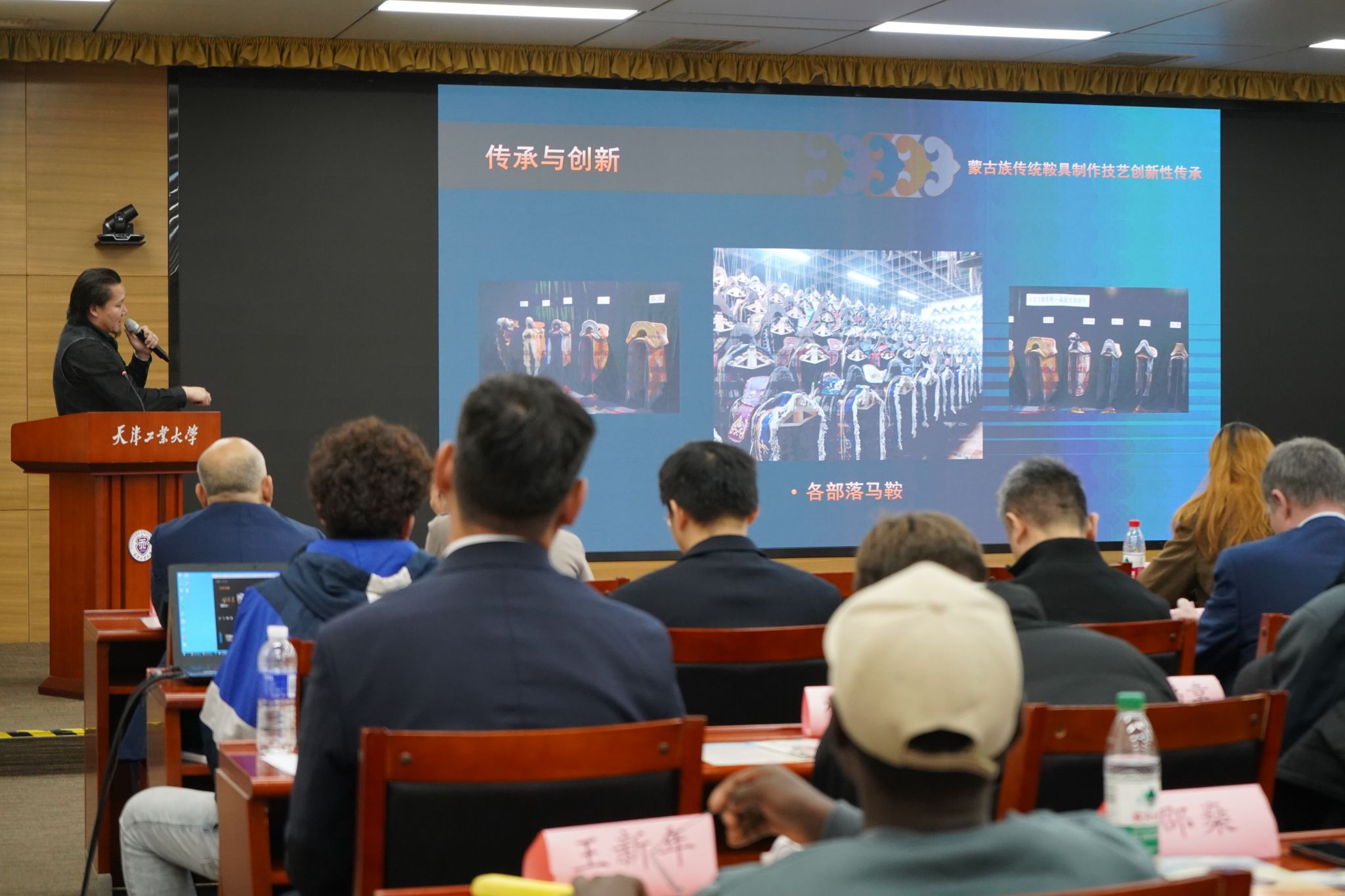 在大會報告環節,我校美術與設計學院教師、內蒙古工藝美術大師木仁圍繞“中華文化傳承創新、中外文明交流互鑒”主題,以“蒙古族傳統鞍具制作技藝創新性傳承”為題作主旨報告。在文藝展演環節,我校音樂與舞蹈學院教師滿都拉圖及4名學生分別攜長調歌曲《贊歌》、舞蹈《茶脈共舞·絲路傳情》精彩亮相,展示了中華優秀傳統文化的豐富內涵,成為“講好中國故事、傳播好中國聲音”的生動實踐。