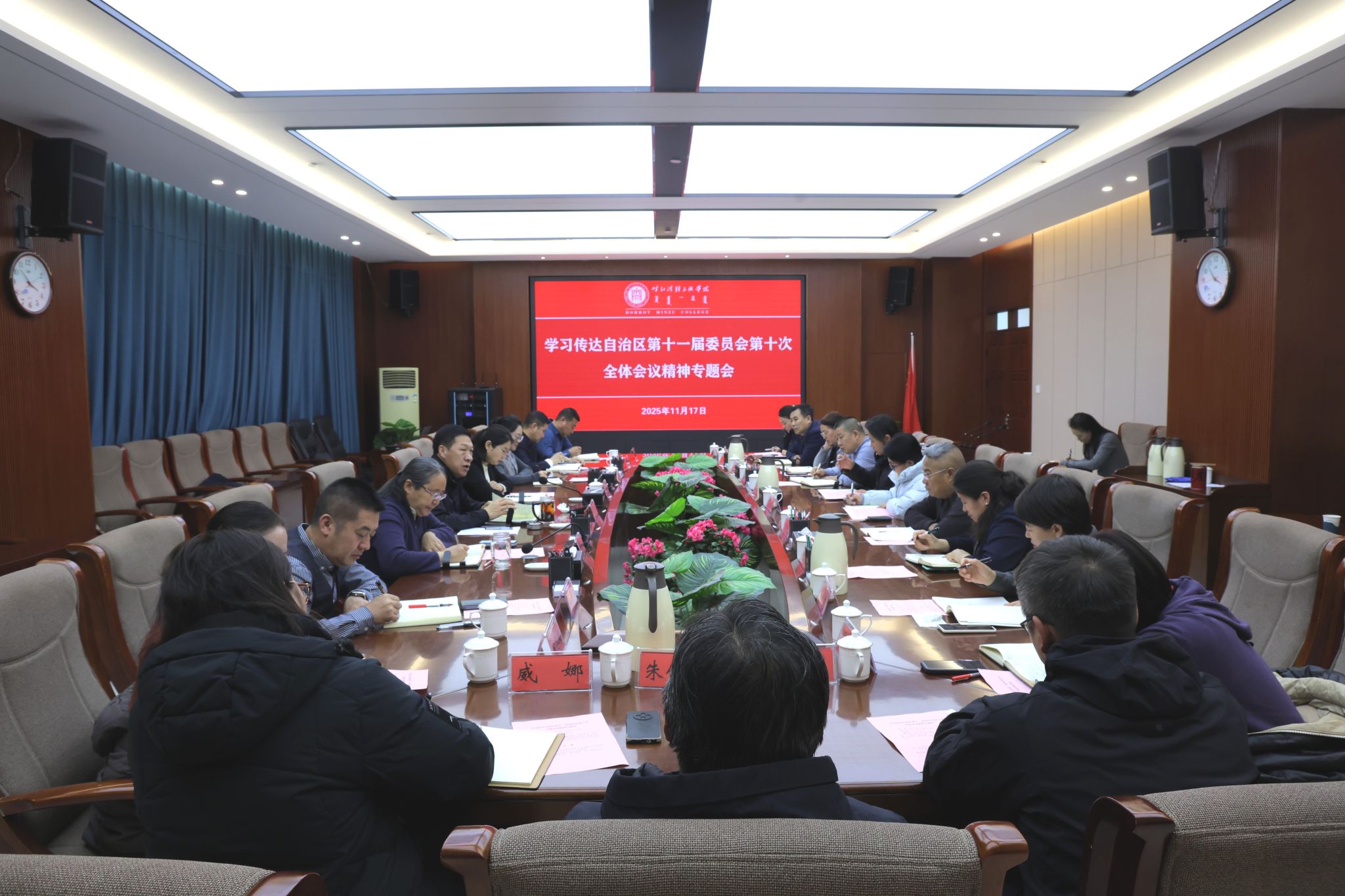 11月17日,學校組織召開專題學習會,傳達學習自治區黨委十一屆十次全會精神。校黨委書記劉九萬出席會議并講話。校黨委副書記格根哈斯,黨委委員、紀委書記、監察專員王冬梅出席會議。黨政辦、組織部、宣傳部、統戰部負責人,各學院黨總支書記參會。