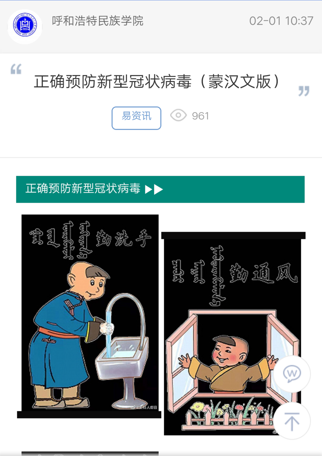上一條:呼和民院-防疫公開課全新上線 下一條:蒙文版來了!致呼和浩特民族學(xué)院全體師生的一封信