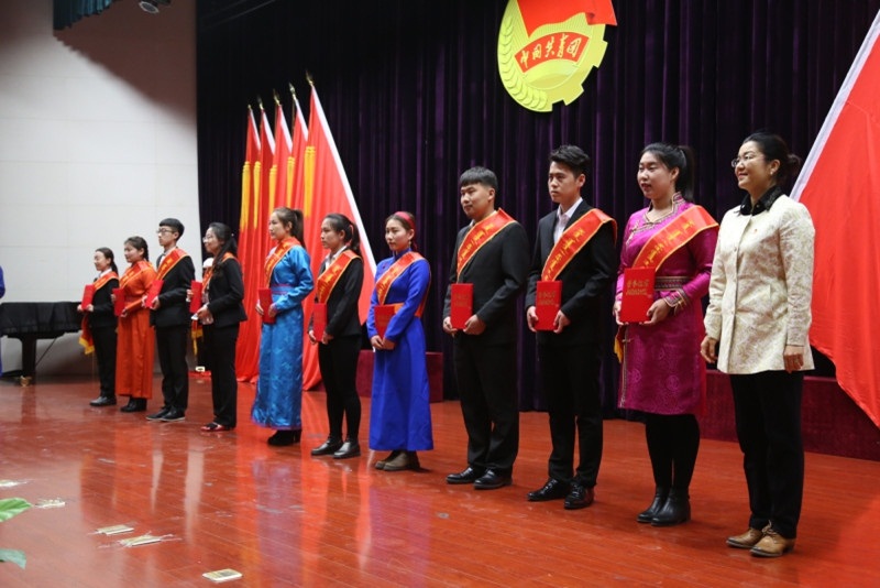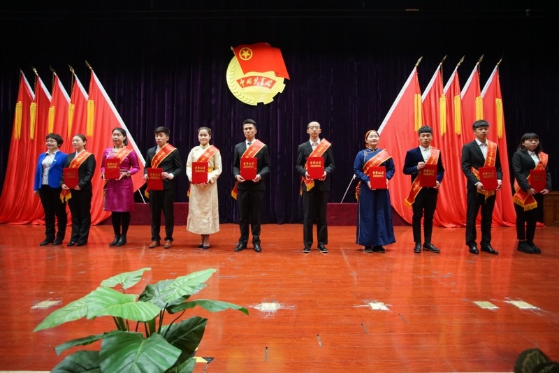 校黨委副書記、院長(zhǎng)格日樂圖為五四紅旗團(tuán)支部頒獎(jiǎng)