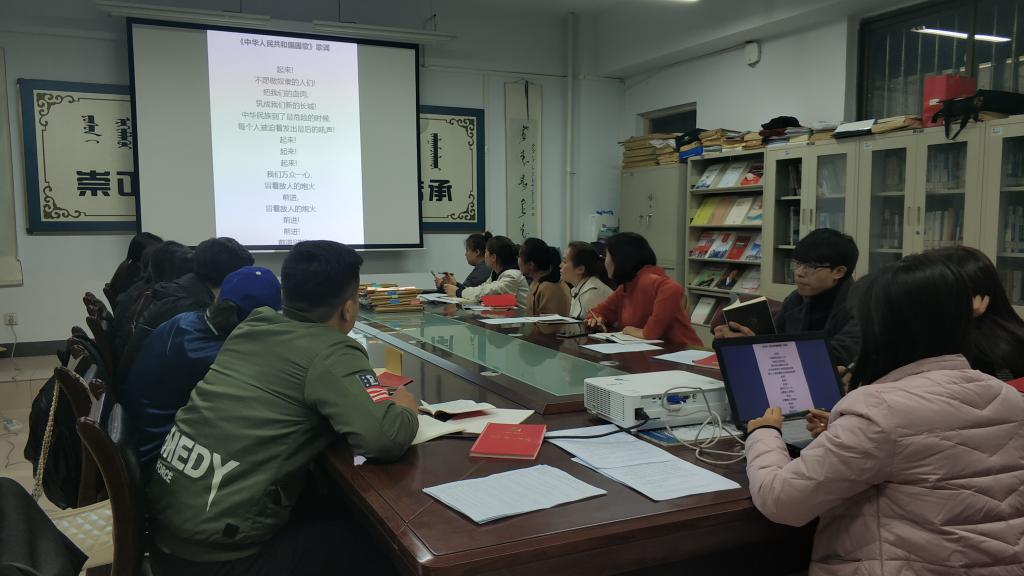 3月11日19時,傳媒系在都林樓509系資料室開展了名為“學(xué)習(xí)國旗法,唱好國歌”的主題學(xué)習(xí)活動。輔導(dǎo)員白淑華老師、蘇日巴特老師攜全系各班班干開展了本次活動。