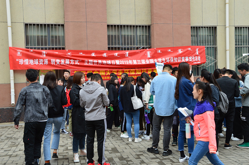 為宣傳環保知識,提高大學生環境保護意識,引導師生用實際行動參與保護環境,4月25日上午,環境工程系環保協會、學生黨支部組織開展了“珍惜地球資源 轉變發展方式”的主題世界地球日——暨2019年第三屆全國大學生環保知識競賽宣傳活動。
