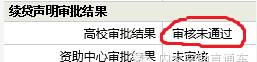 (四)續貸聲明網上提交后,經學校審核,如字數不夠或者內容不符,未能通過審核,則系統顯示審核未通過。學生需要重新填寫。重新填寫時需要刪除現有的申請,重新新增貸款申請。