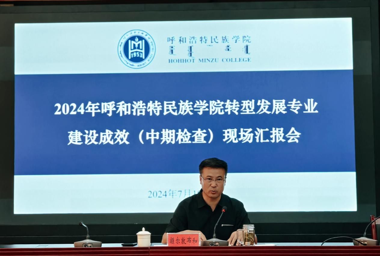 7月19日,學校在辦公樓四樓會議室召開了呼和浩特民族學院2024年轉型發展專業建設成效(中期檢查)現場匯報會。校黨委委員、副校長額爾敦布和出席并主持會議。