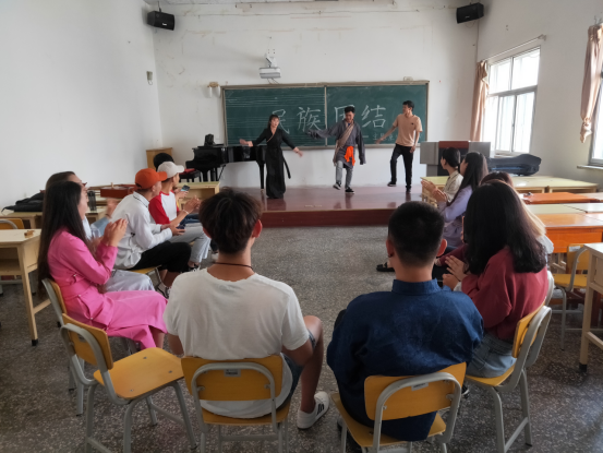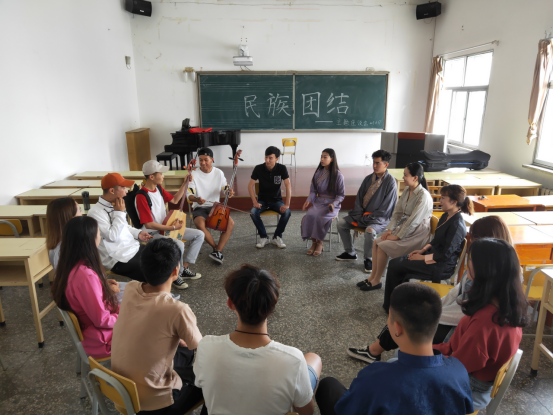 此次座談會開場由來自新疆的2018級學生蒙克·道爾加拉、西藏的2018級學生次仁曲加和來自興安盟的2017級學生包明利三位同學,現場用各自帶來的樂器,馬頭琴、圖布秀爾、口弦琴編曲合奏,為座談會拉開帷幕。接著同學們依次發言介紹自己家鄉的民族習俗、民族文化和民族樂器、音樂等,大家暢所欲言,互相了解,進一步通過座談會增進了彼此感情。來自西藏的三位同學為了活躍氣氛現場給同學們跳了家鄉的舞蹈。